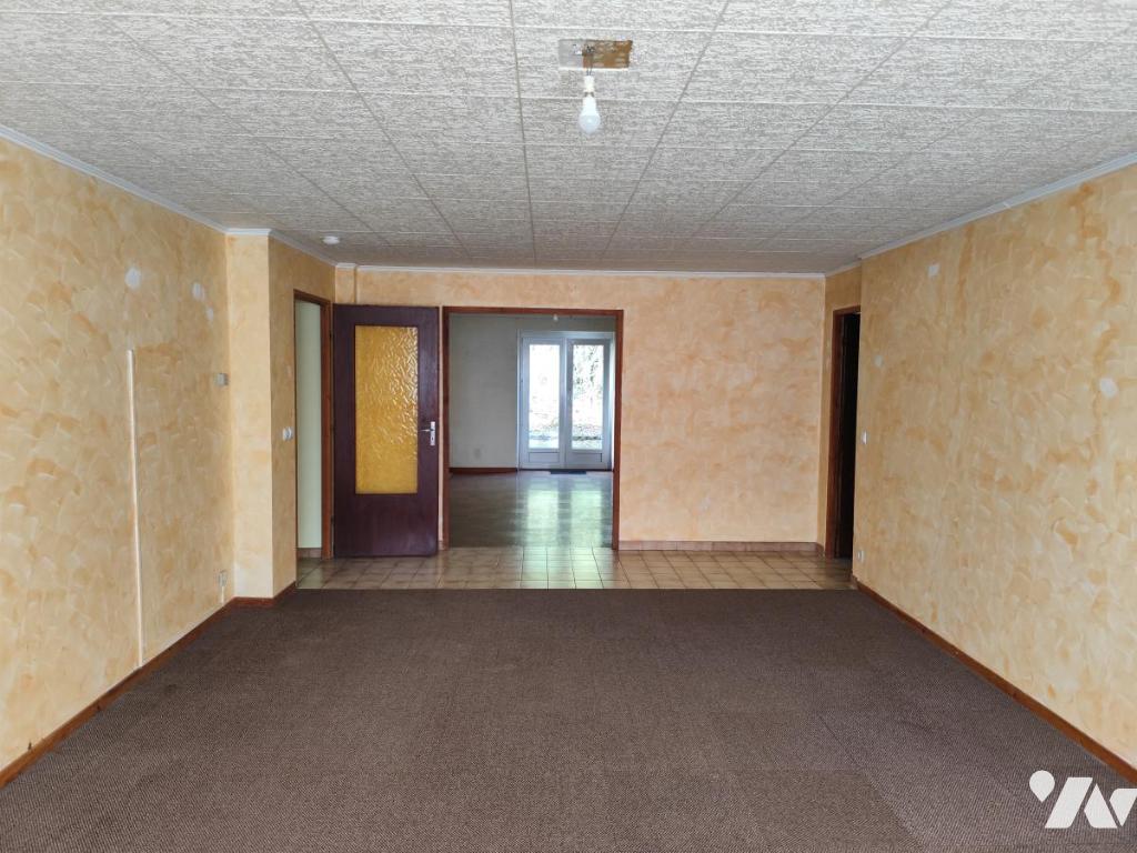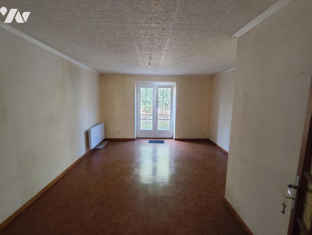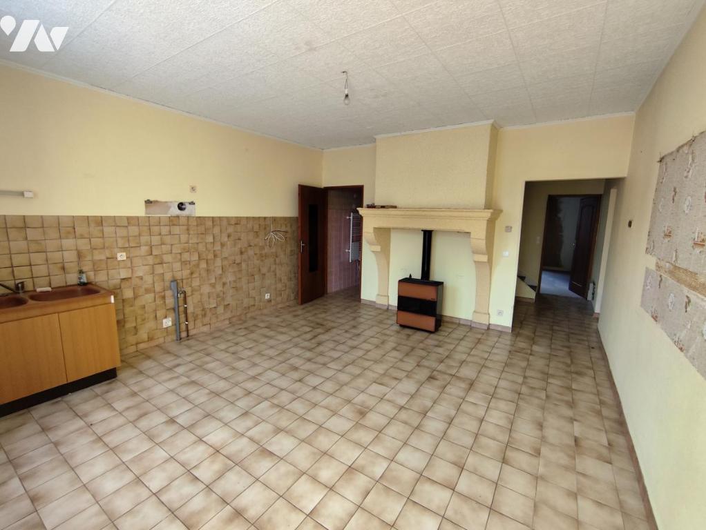 -> Au rez-de-chaussée : entrée sur cuisine, salle d'eau, dégagement, chambre/bureau, salon, salle à manger, accès couloir technique avec fosse septique, un WC séparé accès devant et derrière la maison.